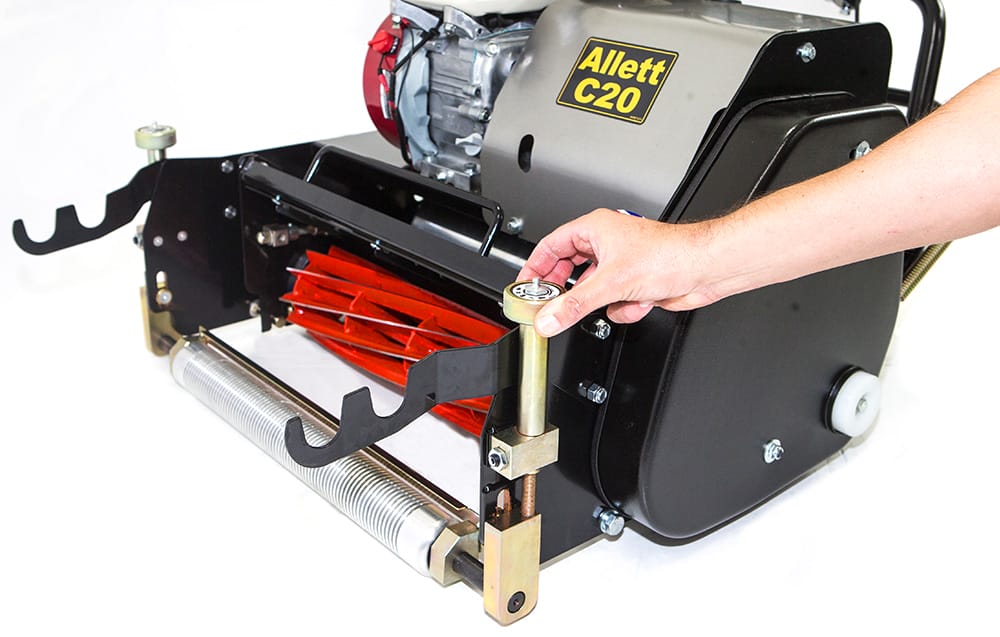 La tondeuse Allett C20 est dotée d'un réglage de hauteur de type micrométrique, permettant une coupe précise de 2,4 mm à 19 mm, idéale pour maintenir des coupes basses et uniformes sur les terrains de cricket, les greens de bowling et les surfaces de gazon fin où la précision est essentielle.