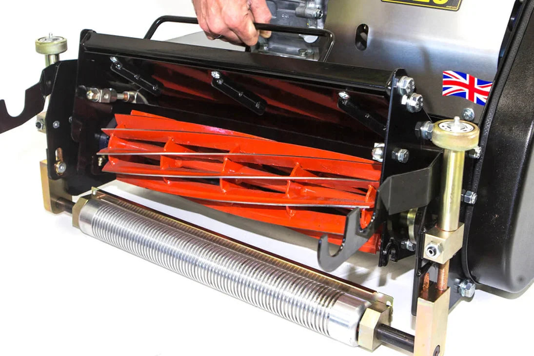 Cylindres à 6 et 10 lames disponibles : Le cylindre à six lames assure une coupe nette et précise, tandis que le cylindre à dix lames (en option) permet une tonte encore plus fine. Il offre une finition lisse et professionnelle aux surfaces gazonnées, idéale pour les terrains de sport comme le cricket, le golf et la pétanque.