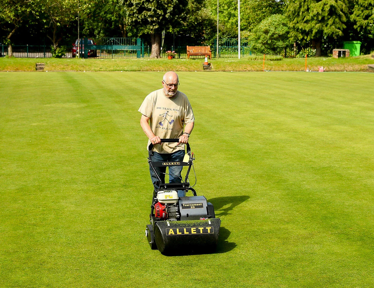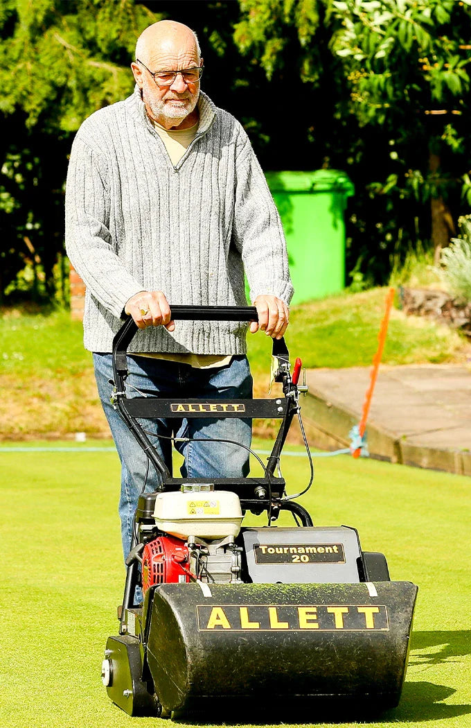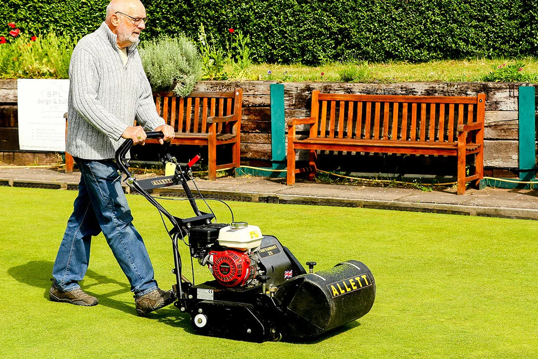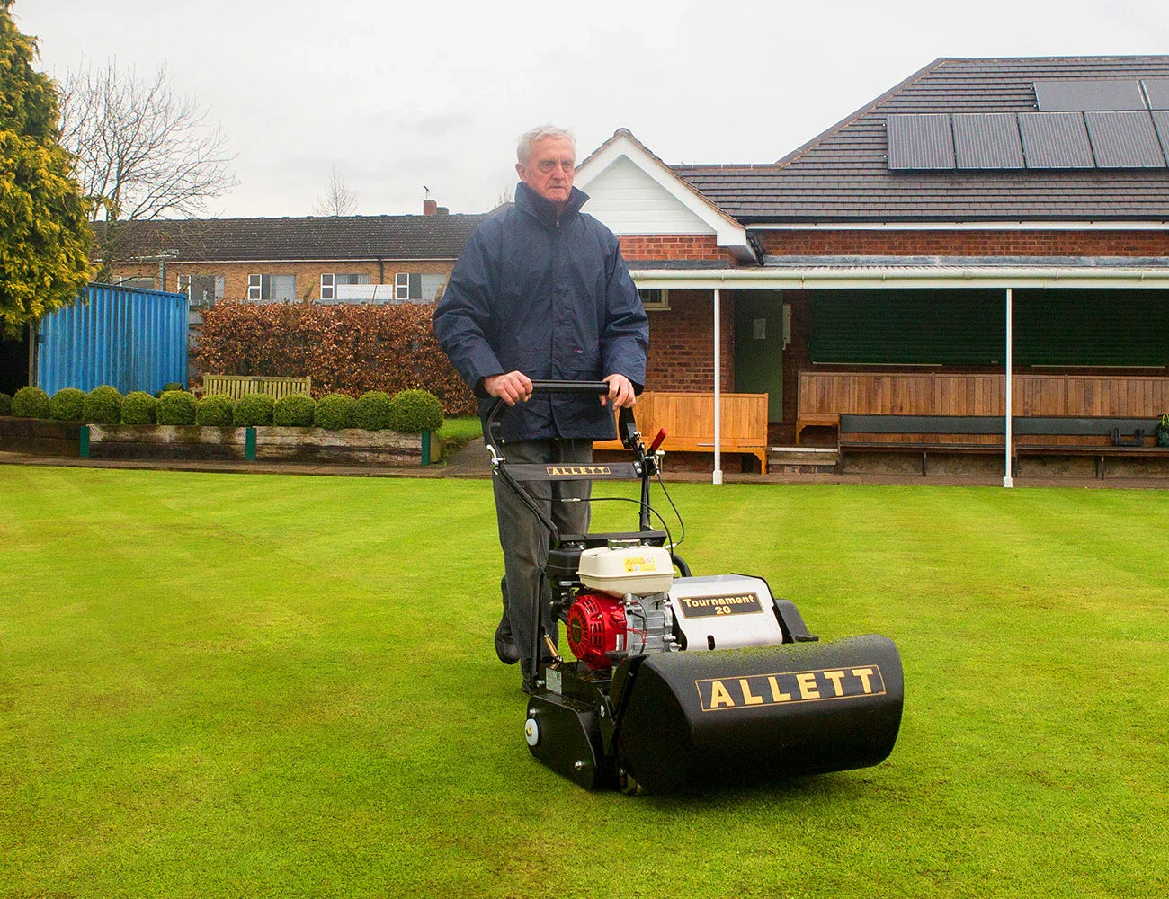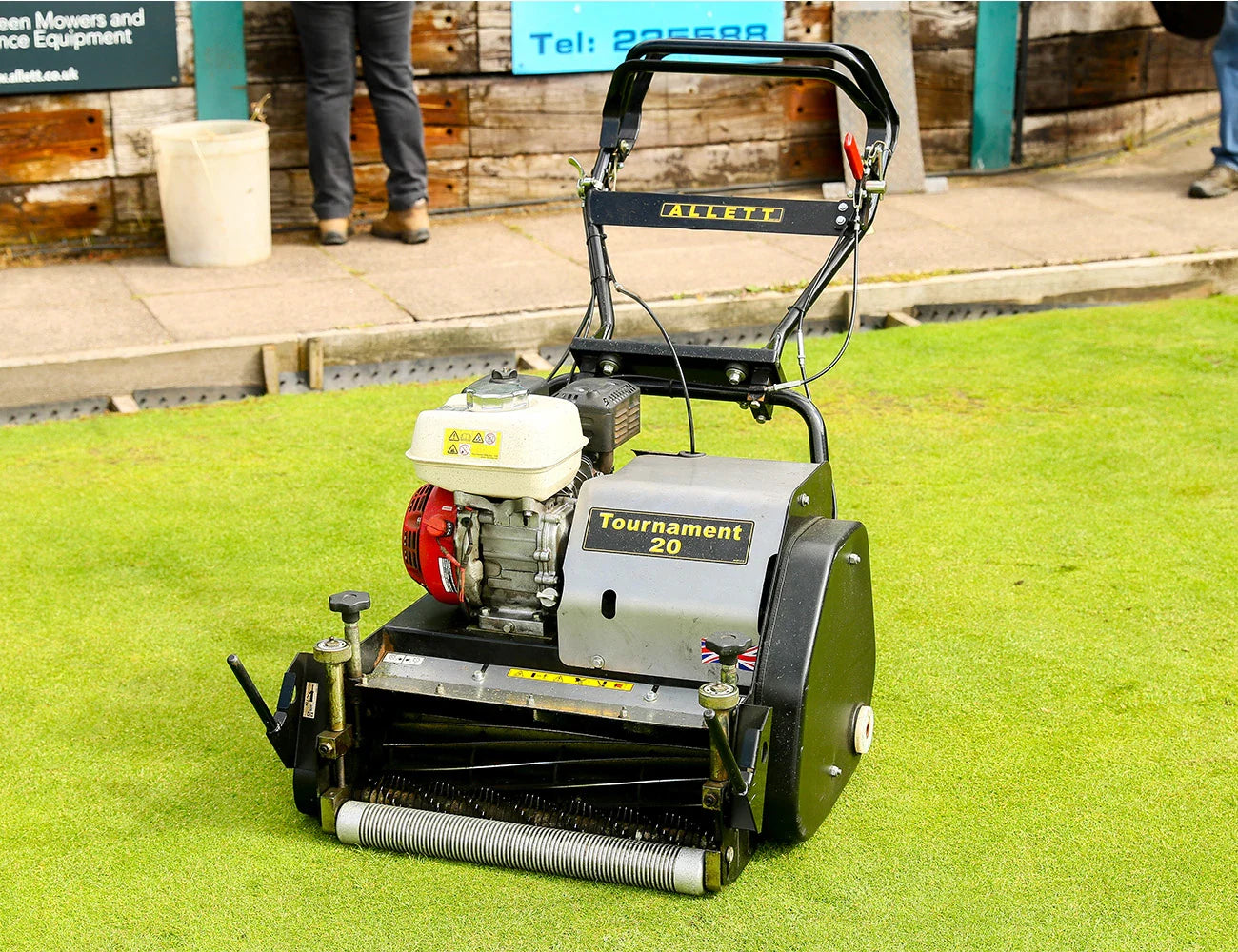 La tondeuse Allett Tournament 20 possède une largeur de coupe de 20 pouces (510 mm), idéale pour l'entretien des terrains de cricket, des greens de golf, de tennis, de croquet et de boules, assurant une finition de haute qualité sur les terrains de sport.