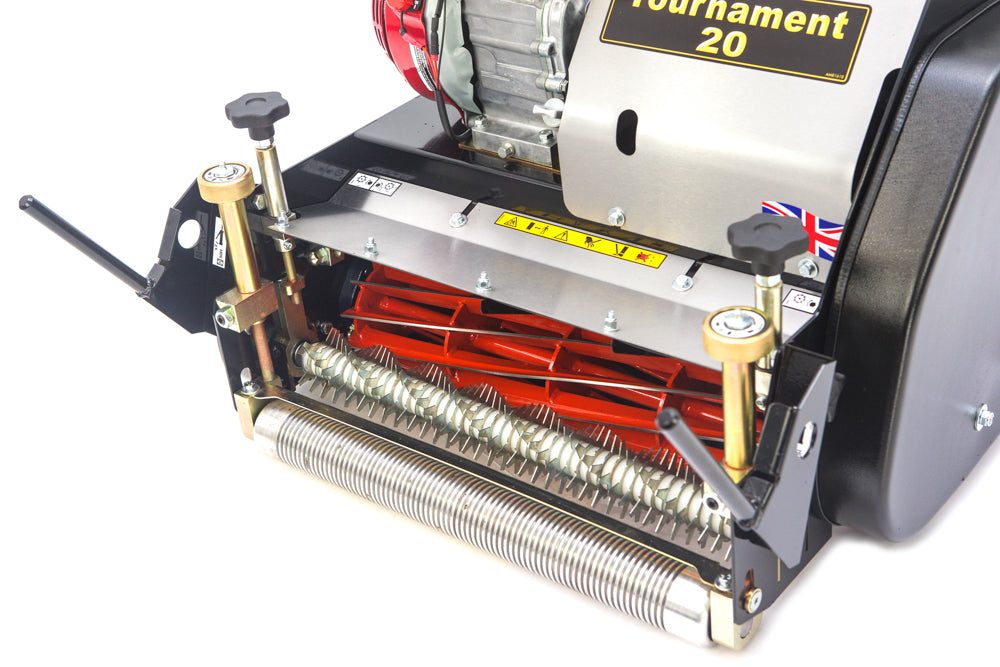 Doté d'un cylindre de précision à 10 lames réalisant 217 coupes par mètre, le Tournament 20 produit une coupe nette et régulière, idéale pour les terrains de cricket, les greens de golf et les surfaces de bowling.